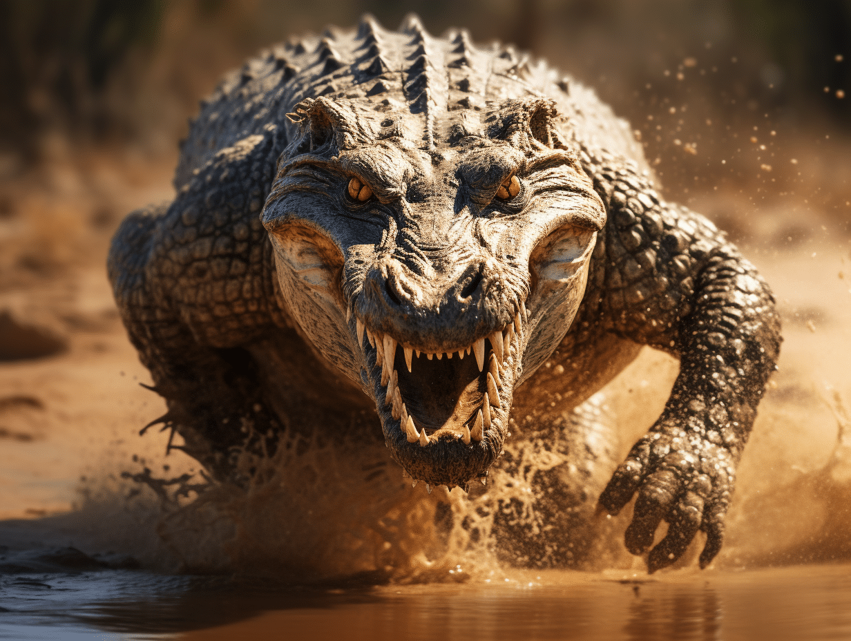 La structure corporelle du crocodile est un parfait exemple d’adaptation évolutive. La morphologie du crocodile, avec ses membres positionnés sous son corps, lui confère une stabilité et une poussée adéquate lorsqu’il s’élance à la poursuite d’une proie ou s’échappe d’un danger imminent. Bien que la durée de leurs sprints soit généralement courte, la capacité à mobiliser une telle énergie en un instant témoigne de l’efficacité de leur comportement de chasse et de survie.